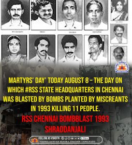 RSS families have been observing August 8 as martyrs’ day; pushpanjali is offered to the photos of pracharaks and others killed in the blast 30 year back.
