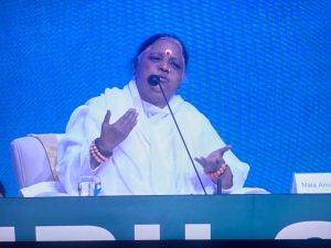 She highlighted Hindu Dharma’s unique acceptance of diverse paths to Truth, giving individuals the freedom to choose their spiritual journey. Comparing Dharma to a mother, Mata Amritanandmayi Devi said, “Living without Dharma is like forgetting one’s own mother’s home address.” She urged everyone to embrace the expansive and inclusive lap of Bharat Mata, emphasizing that no one should be rejected from her embrace.