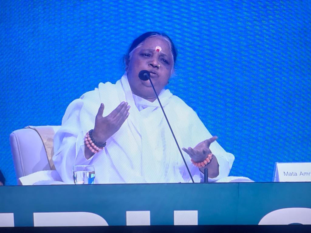 Addressing the attendees, Mata Amritanandmayi Devi emphasized the pivotal role of Dharma in bringing wellbeing and prosperity to humanity. She stated, “When we do our part to protect Dharma, it will protect us.” Highlighting the profound connection between human beings and nature, she underscored the importance of restoring Dharma as the solution to save the world and humanity. Mata Amritanandmayi Devi expressed concerns about the diminishing wellspring of love and selfless service in today’s world and asserted that being firmly established in Dharma is the way forward.