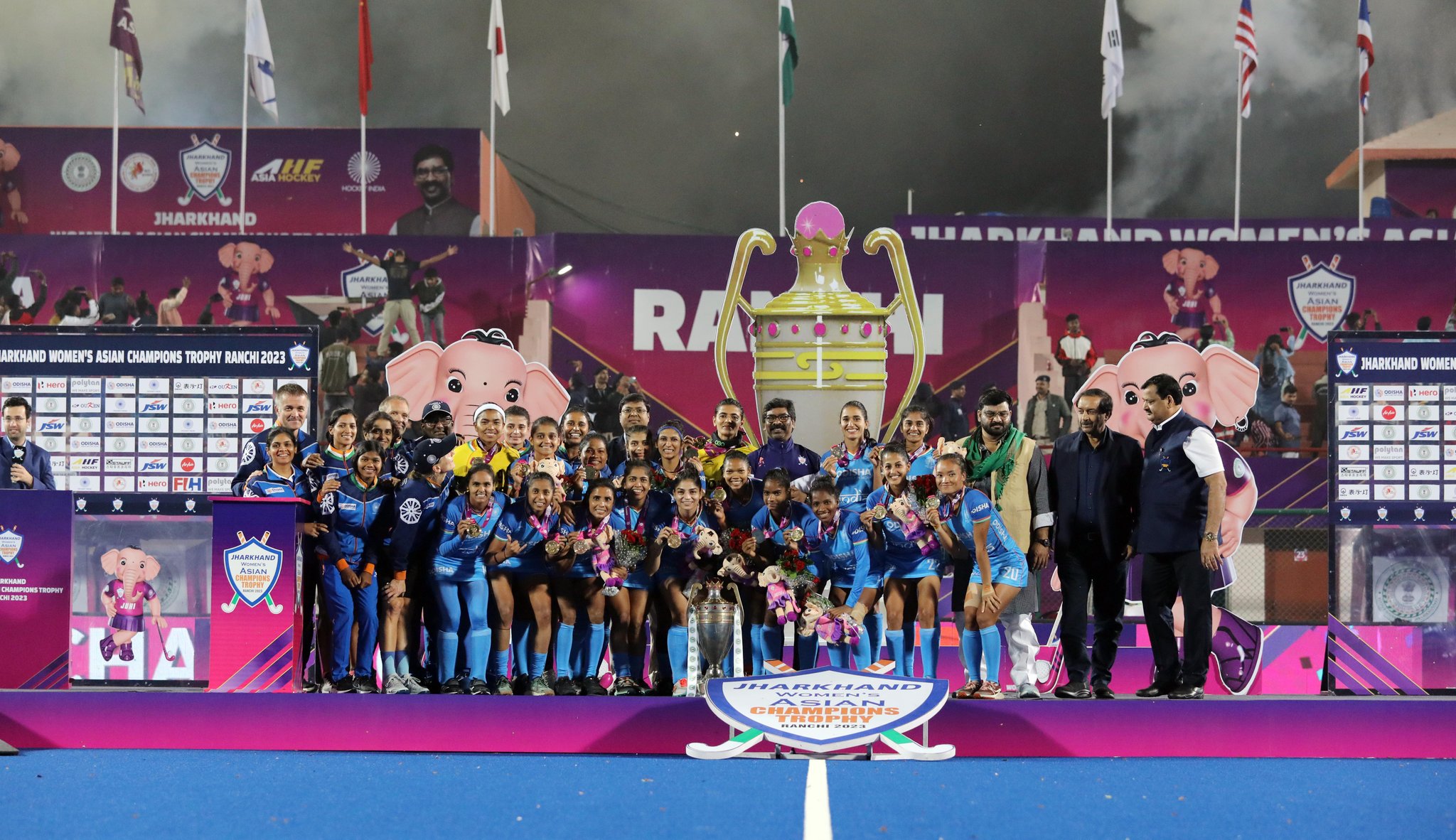 In recognition of their exceptional performance, marked by an undefeated streak throughout the tournament and their title victory, Hockey India announced 3 lakh rupees to each player, and 1.50 lakh rupees each for support staff. Jharkhand’s Salima Tete was announced the Player of the Tournament.