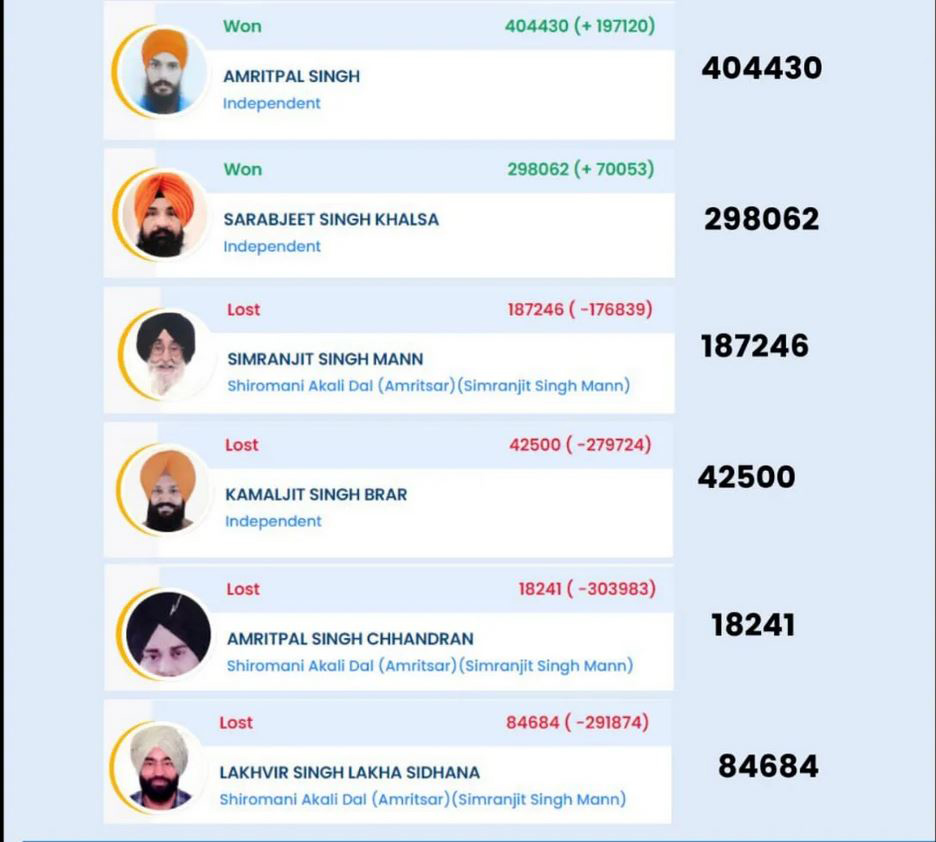 Khalistani separatists; Two elected as MPs, others including both secured more than 10 lakh votes in LS Elections